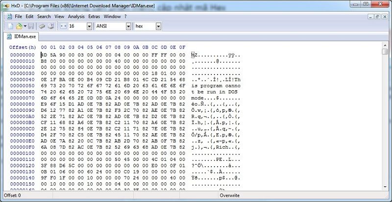 Đầu tiên, bạn cần tải phần mềm HxD hex editor về (Portable ko cần cài đặt) tại đây, sau đó mở lên và chọn đến file IDM.exe trong thư mục đã cài đặt.