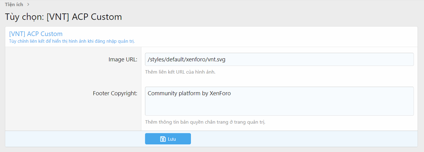 [VNT] ACP Custom - Tùy chỉnh trang quản trị ACP cho Xenforo 2
